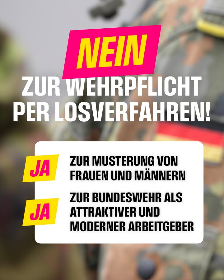 Nach Rekordschulden und Rentenpaket verkauft die Bundesregierung die junge Generation mit dem Losverfahren erneut. In Zeiten hybrider Kriegsführung muss die Bundeswehr besser ausgestattet und ein attraktiver Arbeitgeber sein. Wir brauchen die Besten, nicht diejenigen, die das Los getroffen hat. Gleichzeitig können wir es uns bei der Verteidigung nicht leisten, auf die Hälfte des Landes zu verzichten. Das Grundgesetz sollte jetzt geändert werden, um auch Frauen mustern zu können. Dass Union und SPD Frauen ausschließen, ist im 21. Jahrhundert völlig aus der Zeit gefallen.